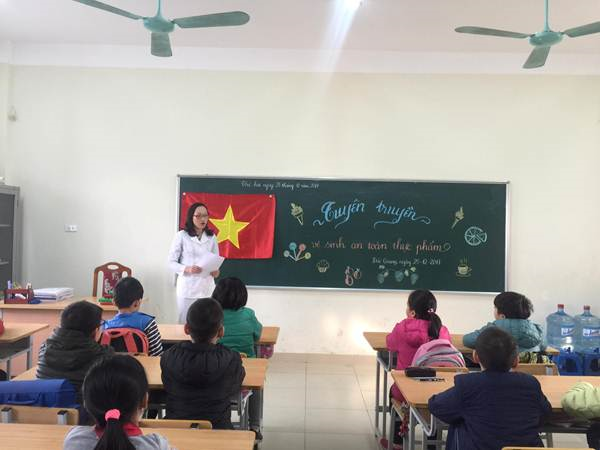 Thực hiện Công văn số 825/YT ngày 19/12/2017 của Phòng y tế quận Long Biên “Về việc Tăng cường các biện pháp phòng chống ngộ độc thực phẩm” trước, trong dịp Tết Dương lịch, Tết Nguyên Đán và Lễ hội xuân năm 2018 trên địa bàn quận Long Biên, ngày 25/12/2017, cán bộ y tế phối hợp cùng GVCN trường Tiểu học Đức Giang đã thực hiện tuyên truyền tới các em học sinh những kiến thức về vệ sinh an toàn thực phẩm và cách phòng tránh ngộ độc thực phẩm.