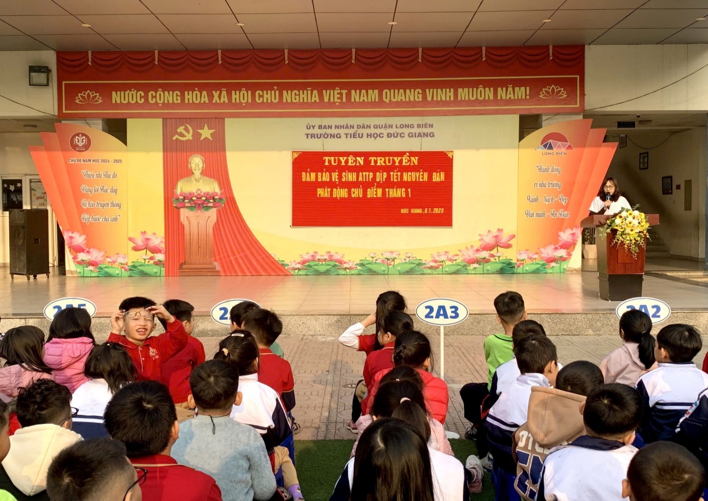 Trường Tiểu học Đức Giang đã triển khai các hoạt động giáo dục về vệ sinh an toàn thực phẩm cho học sinh từ đầu năm học. Các buổi ngoại khóa, sinh hoạt lớp đã giúp học sinh nhận thức rõ ràng về tầm quan trọng của việc bảo đảm vệ sinh thực phẩm trong mùa Tết. Nhà trường cũng phối hợp với phụ huynh trong việc tuyên truyền, nhắc nhở về việc lựa chọn thực phẩm an toàn, nguồn gốc rõ ràng.