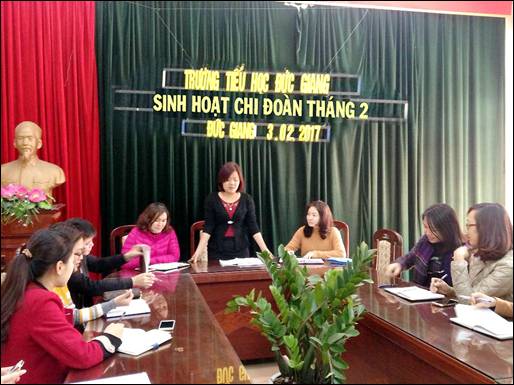 Với mục đích giúp các đồng chí đoàn viên trong Chi đoàn thực hiện tốt các nhiệm vụ đề ra trong tháng 2 và tháng 3, để hưởng ứng tháng thanh niên sắp tới, chiều ngày 3/2/2017, Chi đoàn trường Tiểu học Đức Giang tổ chức sinh hoạt Chi đoàn tháng 2 với chủ điểm “ Mừng xuân Đinh Dậu – mừng Đảng quang vinh”