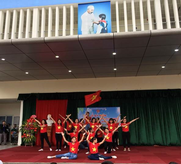 Mở đầu buổi lễ là tiết mục dân vũ: Hãy đến với con người Việt Nam tôi do các Đ/c đoàn viên và các em HS lớp 5 biểu diễn.