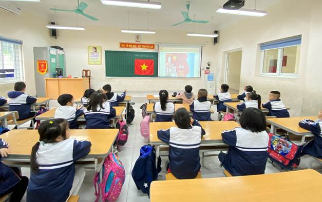 !important; Sáng thứ 2 đầu tuần, ngày 12/12/2022 vì thời tiết rất lạnh nên trường tiểu học Đức Giang đã tổ chức cho học sinh chào cờ tại lớp học. Sau phần nghi thức chào cờ Đội, hát Quốc ca, Đội ca là phần nhận xét, ưu điểm, tồn tại các hoạt động nề nếp của học sinh tuần 14 và đọc điểm thi đua.