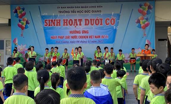 Thực hiện Kế hoạch số 206/KH – PGDĐT ngày 24/10/2022 về tổ chức các hoạt động hưởng ứng “Ngày Pháp luật nước Cộng hòa xã hội chủ nghĩa Việt Nam” năm 2022; chiều ngày 05/11/2022, trường Tiểu học Đức giang long trọng tổ chức chương trình “Hưởng ứng Ngày pháp luật nước CHXHCN Việt Nam năm 2022” .