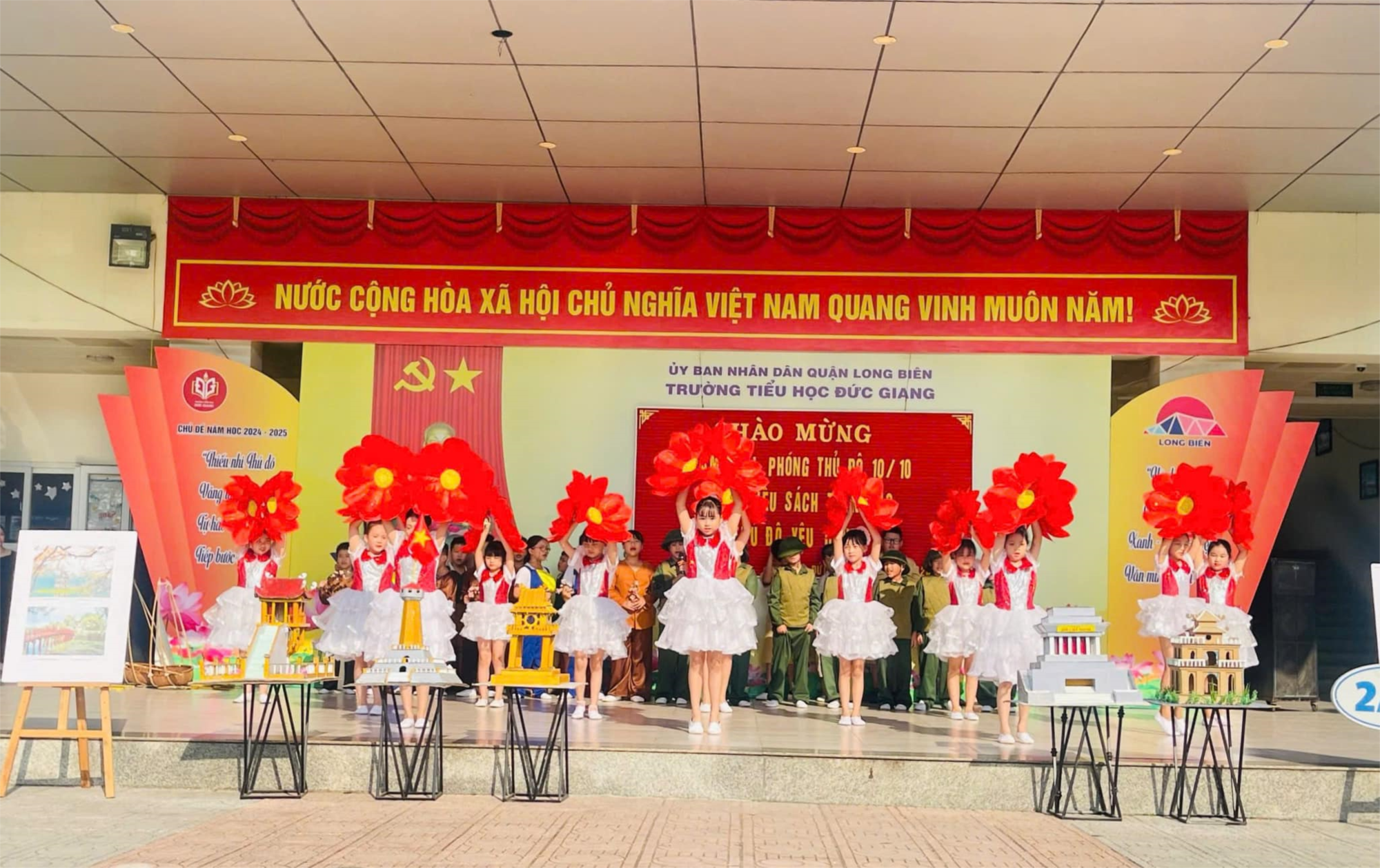 Trong không khí thủ đô nô nức kỉ niệm 70 năm ngày giải phóng, cô giáo Nguyễn Lệ Giang Thương và tập thể lớp 4A2 đã mang đến những tiết mục giới thiệu về cuốn sách "Hà Nội - mùa thu cách mạng" vô cùng sinh động và cuốn hút để sống lại những kí ức lịch sử hào hùng năm ấy.