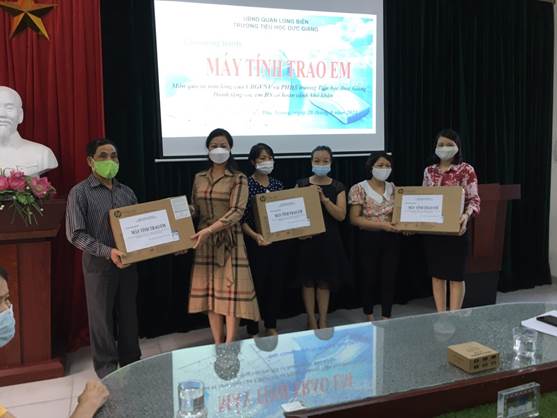 !important; Để hưởng ứng chương trình “Máy tính cho em” do sở GD&ĐT Hà Nội phát động cùng với phương châm “ Trong bất cứ hoàn cảnh nào, không để học sinh bị bỏ lại phía sau”, trường Tiểu học Đức Giang đã gửi thư ngỏ tới cán bộ, giáo viên, nhân viên và PHHS các lớp kêu gọi vận động ủng hộ, giúp đỡ những học sinh trong nhà trường có hoàn cảnh đặc biệt khó khăn đang thiếu điều kiện học tập. Chỉ trong 03 ngày, từ ngày 23/9 đến ngày 26/9/2021, sau sau khi phát động chương trình đã quyên góp được 101.100.000 đồng và 50kg gạo cùng 5 suất quà bằng hiện vật. Nhà trường đã phối hợp cùng Ban cha mẹ học sinh, Ban chấp hành Công đoàn, Hội chữ thập đỏ trao tặng bị máy tính, laptop thiết bị và một số lương thực nhu yếu phẩm để hỗ trợ kịp thời những học sinh có hoàn cảnh khó khăn không có máy tính để học tập trực tuyến.
