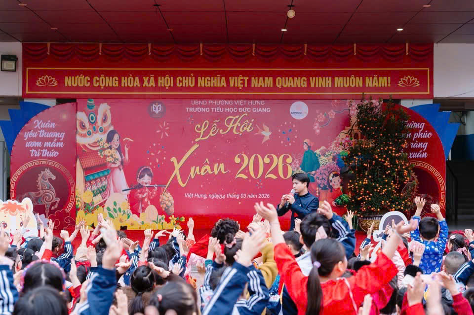 Ngày 04/3, Trường Tiểu học Đức Giang phối hợp cùng Bamboo Edu tổ chức chương trình “Hội Xuân 2026” trong không khí vui tươi, ấm áp và tạo cơ hội để học sinh được trải nghiệm những nét đẹp văn hóa truyền thống của dân tộc với nhiều hoạt động phong phú và ý nghĩa.