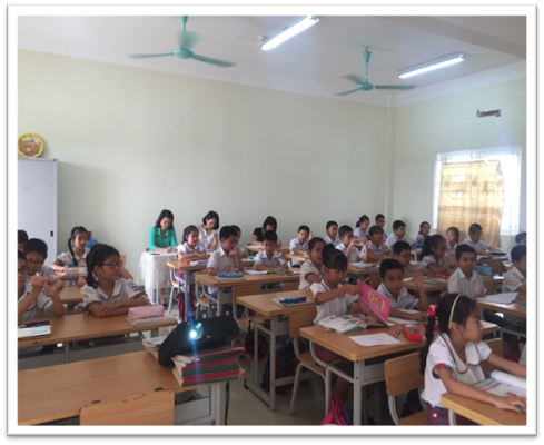 Hình ảnh cô giáoThu Trang đang tổ chức các hoạt động học tập cho HS.
