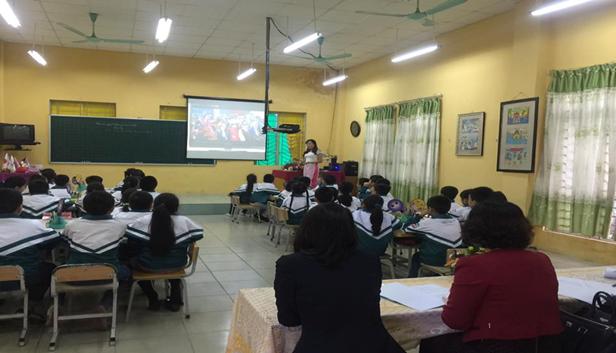 Tham gia hội thi này, cô giáo đã thực hiện 2 tiết dạy: Tiết toán: Các số có 4 chữ số và tiết Đạo đức: Đoàn kết với thiếu nhi quốc tế.