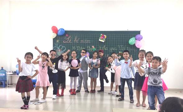 Lớp học được trang trí bằng sản phẩm do các em tự làm để chúc mừng