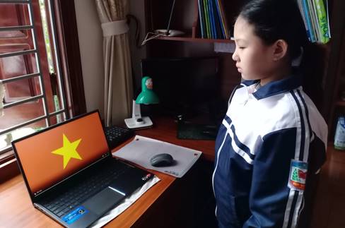 Hình ảnh: học sinh thực hiện nghi lễ chào cờ