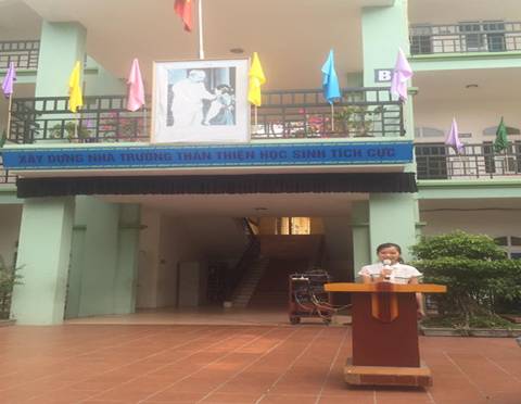 Triển khai phát động thi đua đợt 2 xong, cô Hoa –Tổng phụ trách nhà trường tiếp tục tuyên truyền tới học sinh toàn trường về tình hình mưa lũ và những thiệt hại nặng nề mà người dân tại các tỉnh Nghệ An, Hà Tĩnh, Quảng Bình…. phải gánh chịu trong thời gian vừa qua. Đồng thời qua bài tuyên truyền của mình, cô tổng phụ trách nhà trường đã kêu gọi tất cả các đồng chí cán bộ, giáo viên, nhân viên và học sinh toàn trường chung tay, góp sức, hỗ trợ, ủng hộ đồng bào miền Trung vượt qua khó khăn để sớm ổn định lại cuộc sống. Đây là một hoạt động thiết thực nhằm mục đích giáo dục học sinh tinh thần tương thân, thương ái với những người có hoàn cảnh khó khăn.