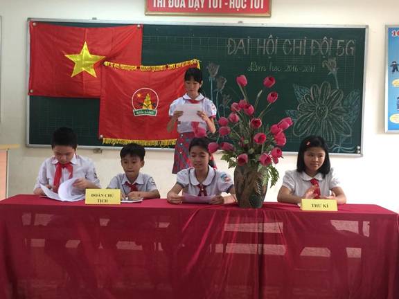 Đại hội Chi đội của lớp 5G vinh dự có sự góp mặt của cô giáo Nguyễn Thị Vinh - Phó hiệu trưởng nhà trường, cô giáo Đỗ Thị Hoa -Tổng phụ trách và các đội viên tiêu biểu của khối 4, 5 cùng toàn thể 39 đội viên của Chi đội 5G.