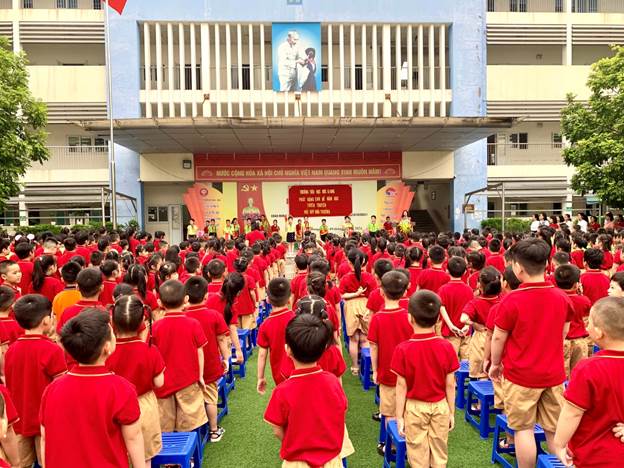 Hình ảnh: Thầy và trò TH Đức Giang tham dự tiết SH dưới cờ sau bão