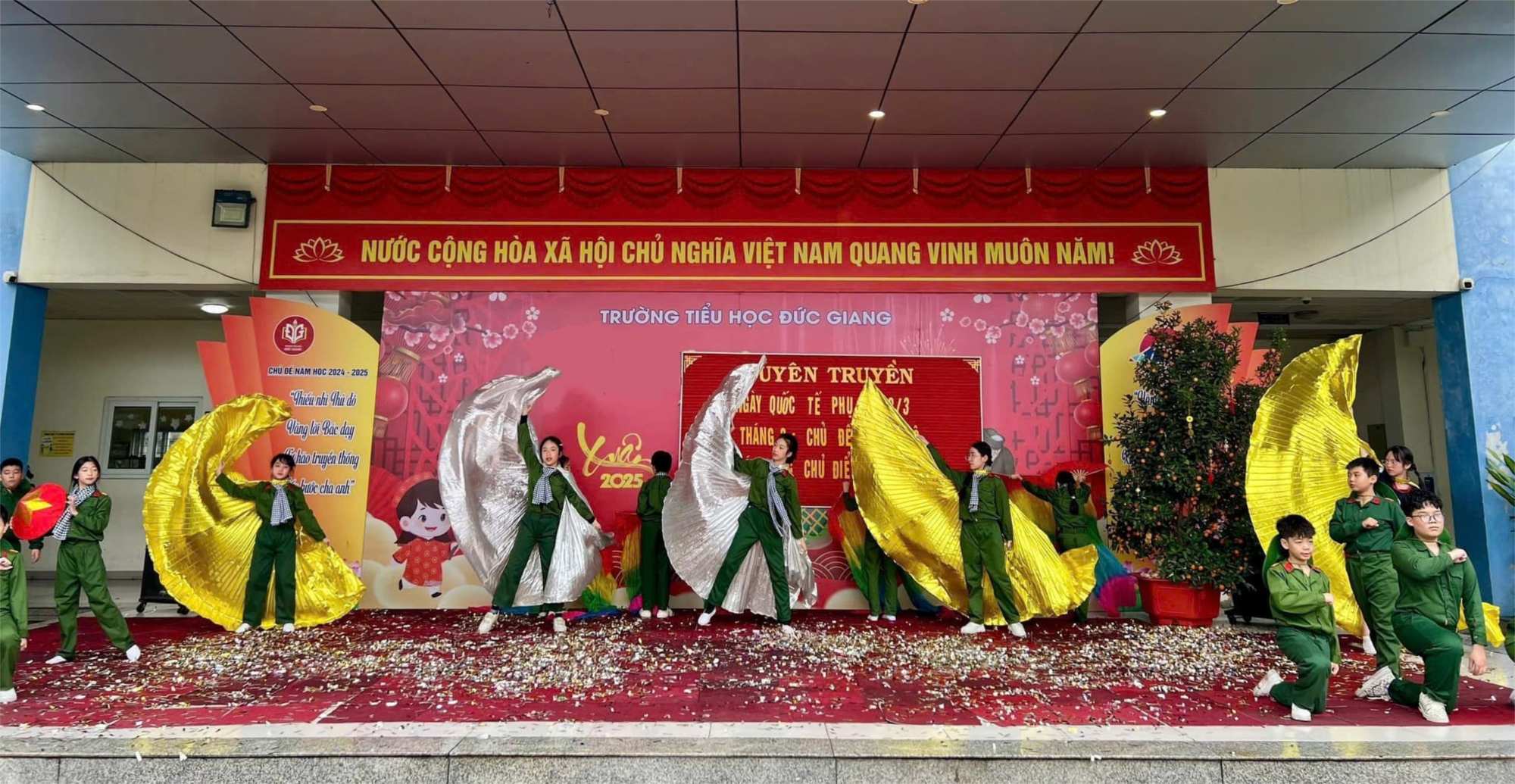 Tháng 3 - tháng của những yêu thương đong đầy đã gõ cửa. Muôn hoa rực rỡ khắp muôn nơi. Chào tuần mới với các tiết mục Sinh hoạt dưới cờ thật ý nghĩa, những cung bậc cảm xúc thật đáng nhớ với màn Giới thiệu sách công phu, sáng tạo của tập thể 5A5 và các tiết mục văn nghệ đáng yêu của các bạn nhỏ 1A3. Buổi trực tuần đã chạm tới trái tim của tất cả các thầy cô và các bạn học sinh với những xúc cảm tự hào xen lẫn xúc động của tập thể lớp 5A5. Lựa chọn giới thiệu sách chủ đề 8/3, các con đã chọn giới thiệu cuốn sách: Truyện kể về mười cô gái ngã ba Đồng Lộc. Tự hào về lịch sử hào hùng của dân tộc có sự góp sức của các cô, các chị, các mẹ. Tự hào về các con ngày hôm nay sẽ viết tiếp những trang vàng cho đất nước. Kính mời thầy cô và các bạn nhấn vào link bên dưới để xem tiết mục văn nghệ của buổi trực tuần! https://www.facebook.com/share/v/1BWr6mqwrz/