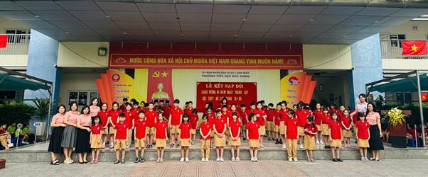 Buổi lễ là một dấu mốc đáng nhớ đối với các em học sinh – những gương mặt rạng ngời, háo hức khi lần đầu tiên được vinh dự đeo chiếc khăn quàng đỏ, biểu tượng thiêng liêng của người đội viên.