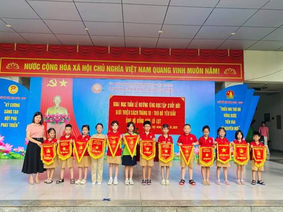 Kết thúc chương trình là tiết mục văn nghệ chủ đề “Thủ đô yêu dấu” do học sinh các lớp 5A4, 5A6 biểu diễn. Những giai điệu hào hùng, tươi sáng đã khép lại buổi sinh hoạt trong bầu không khí rộn ràng, tràn đầy cảm xúc. Buổi sinh hoạt dưới cờ tuần 6 không chỉ là dịp giáo dục truyền thống, rèn luyện kỹ năng sống, mà còn khơi dậy tinh thần đoàn kết, lòng nhân ái và ý thức học tập suốt đời trong mỗi học sinh Tiểu học Đức Giang. Một số hình ảnh của chương trình: