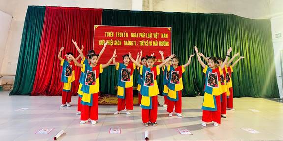 Cuối chương trình, các em học sinh lớp 4A2 đã mang đến tiết mục văn nghệ chủ đề “Thầy cô và mái trường”, giới thiệu những cuốn sách hay, câu chuyện đẹp về tình thầy trò, góp phần lan tỏa thông điệp yêu thương, biết ơn và trân trọng.