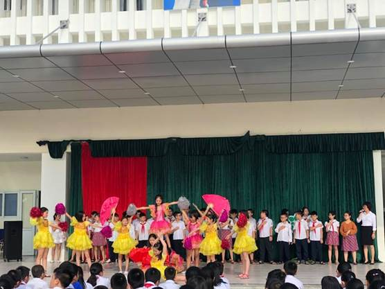 Nội dung cuối cùng trong lễ chào cờ đầu tuần là các tiết mục văn nghệ trực tuần của các học sinh lớp 5G . Mở đầu chương trình là bài múa “ Chắp cánh ước mơ” . Tiết mục thứ hai là phần diễn kịch với tiểu phẩm “ Chiếc cầu thang hình xoắn ốc ” . Quan tiểu phẩm, tập thể lớp 5G muốn gửi tới các bạn toàn trường thông điệp: Hãy yêu thương và biết ơn ông bà, cha mẹ khi họ còn có thể cảm nhận được tình cảm của chúng ta. Vở kịch đã để lại niềm xúc động trong tất cả cán bộ - giáo viên và học sinh nhà trường. Để kết thúc chương trình văn nghệ, tập thể lớp 5G đã gửi tới toàn thể thầy cô và các bạn học sinh bài múa hát “ Em sẽ là chủ nhân Thăng Long”.