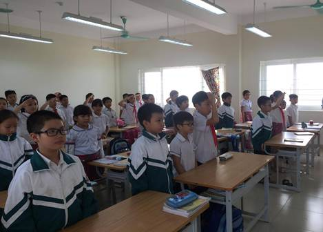 Hình ảnh: học sinh thực hiện nghi lễ chào cờ vào thứ 2 đầu tuần