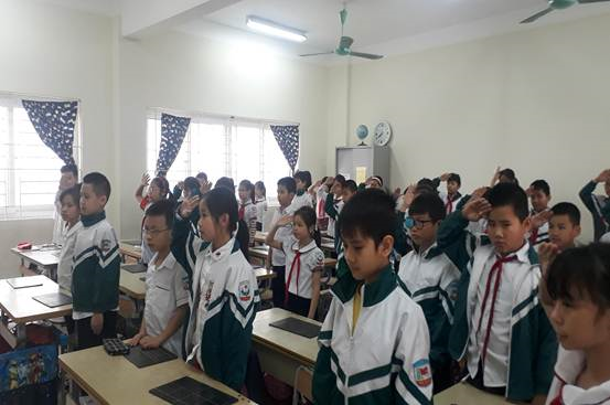 Sáng ngày 26-3-2018, 100% các lớp của trường Tiểu học Đức Giang tổ chức chào cờ đầu tuần trong lớp. Sau phần nghi thức chào cờ Đội, hát Quốc ca, Đội ca là phần nhận xét các hoạt động nề nếp tuần 28.