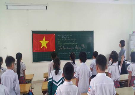 Hình ảnh: Học sinh thực hiện nghi lễ chào cờ vào thứ 2 đầu tuần