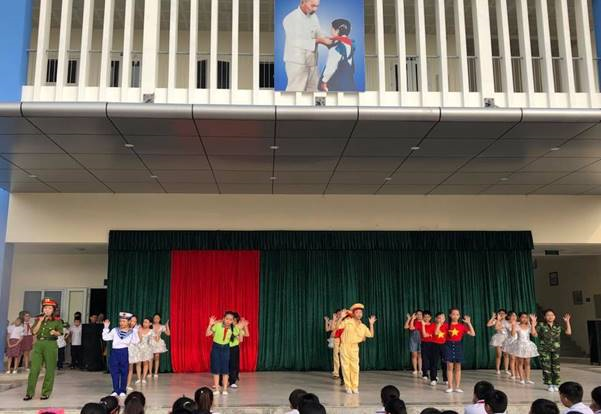 Hình ảnh học sinh biểu diễn văn nghệ chào mừng