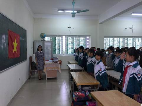 Hình ảnh: học sinh thực hiện nghi lễ chào cờ vào thứ 2 đầu tuần