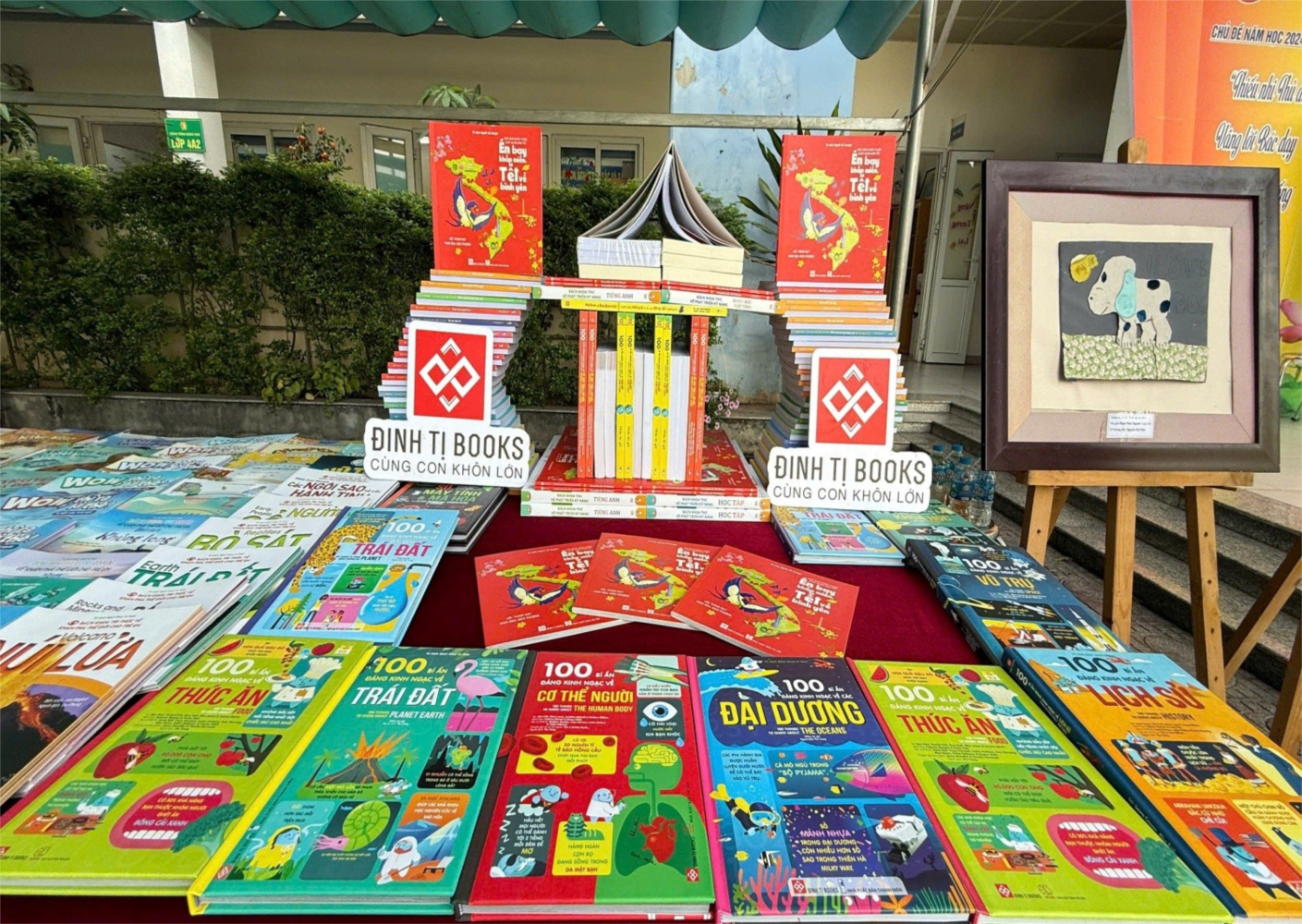 Không khí Ngày hội thêm phần sôi động với các gian trưng bày sách do Nhà sách Đinh Tị thực hiện. Học sinh được tự do tham quan, đọc thử và tìm hiểu về nhiều đầu sách mới lạ, bổ ích. Các trò chơi Minigame thú vị xoay quanh kiến thức về sách cũng đã thu hút sự tham gia nhiệt tình từ các em, và những phần quà hấp dẫn đã được trao cho các bạn học sinh xuất sắc.